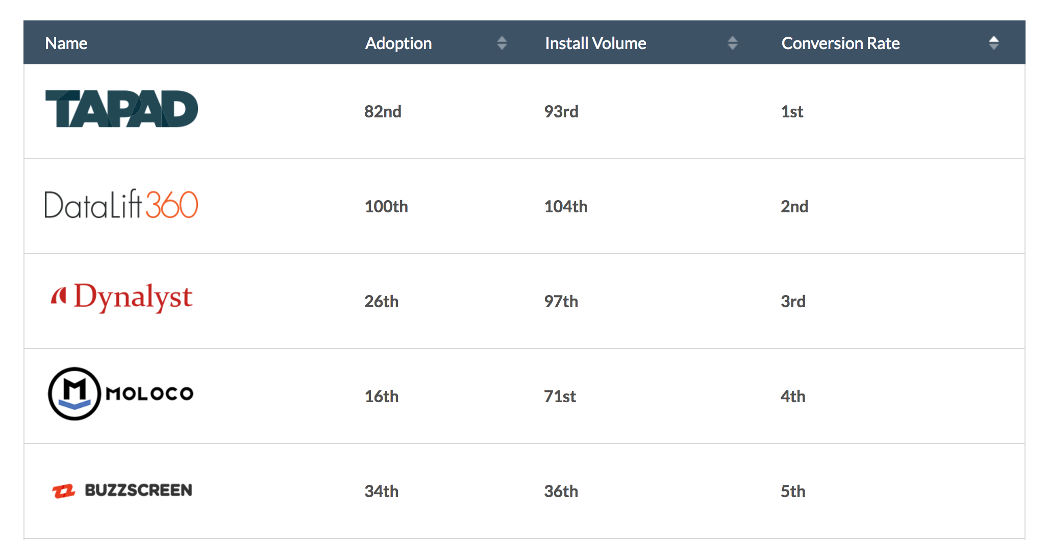 The Mobile Advertising Index is a partial public-facing view into what TUNE Marketing Console clients use daily to find the best ad partners: a window into the collective results of everyone using the platform. (Partners include brands such as Sephora, Sony, and eBay, and mobile-first publishers like Supercell, LINE, and Kabam. See more here.)
