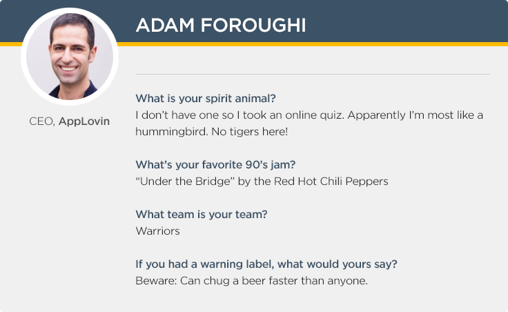 This is an exclusive Q&A with Adam Foroughi, CEO of AppLovin. Adam is scheduled to be a panelist at #Postback15.